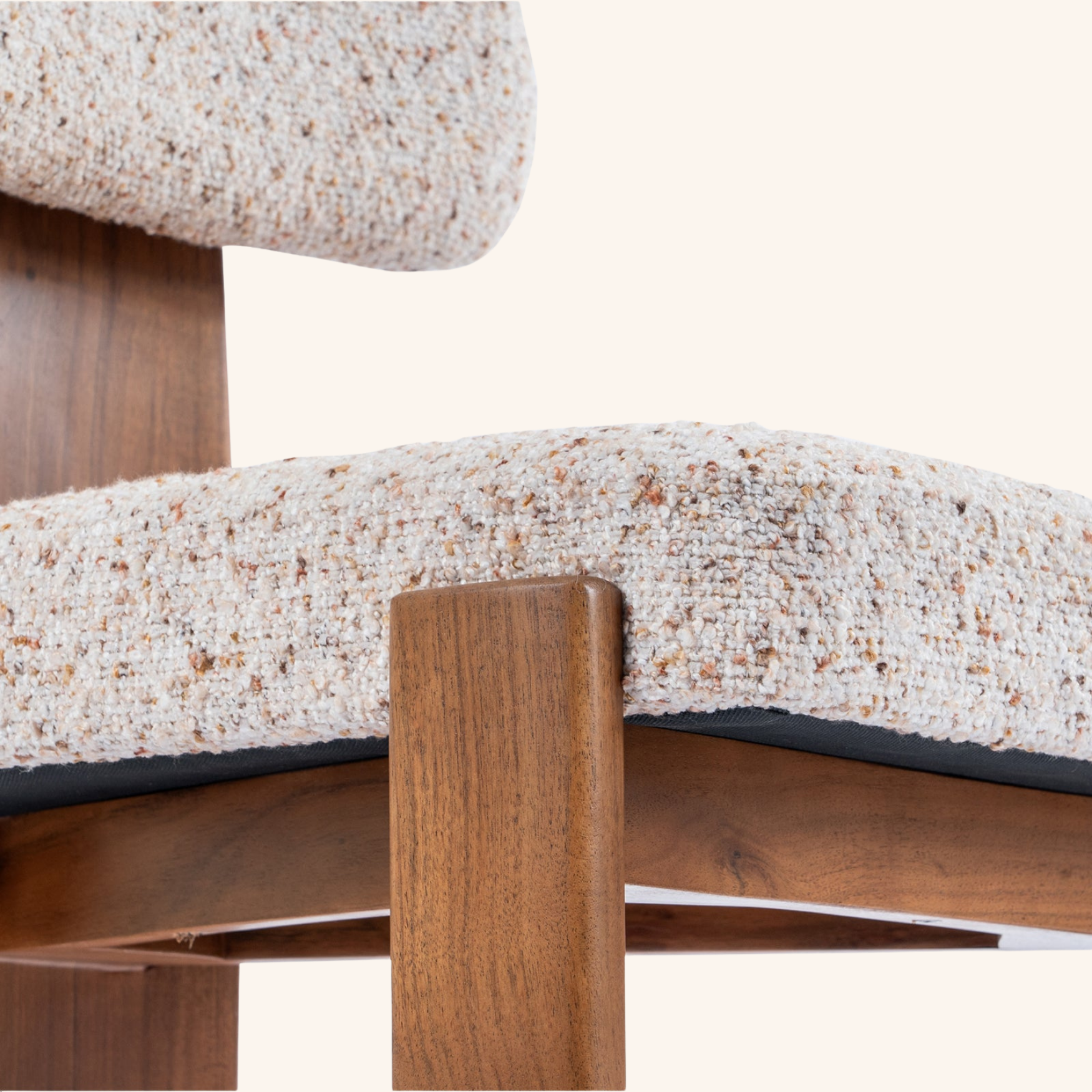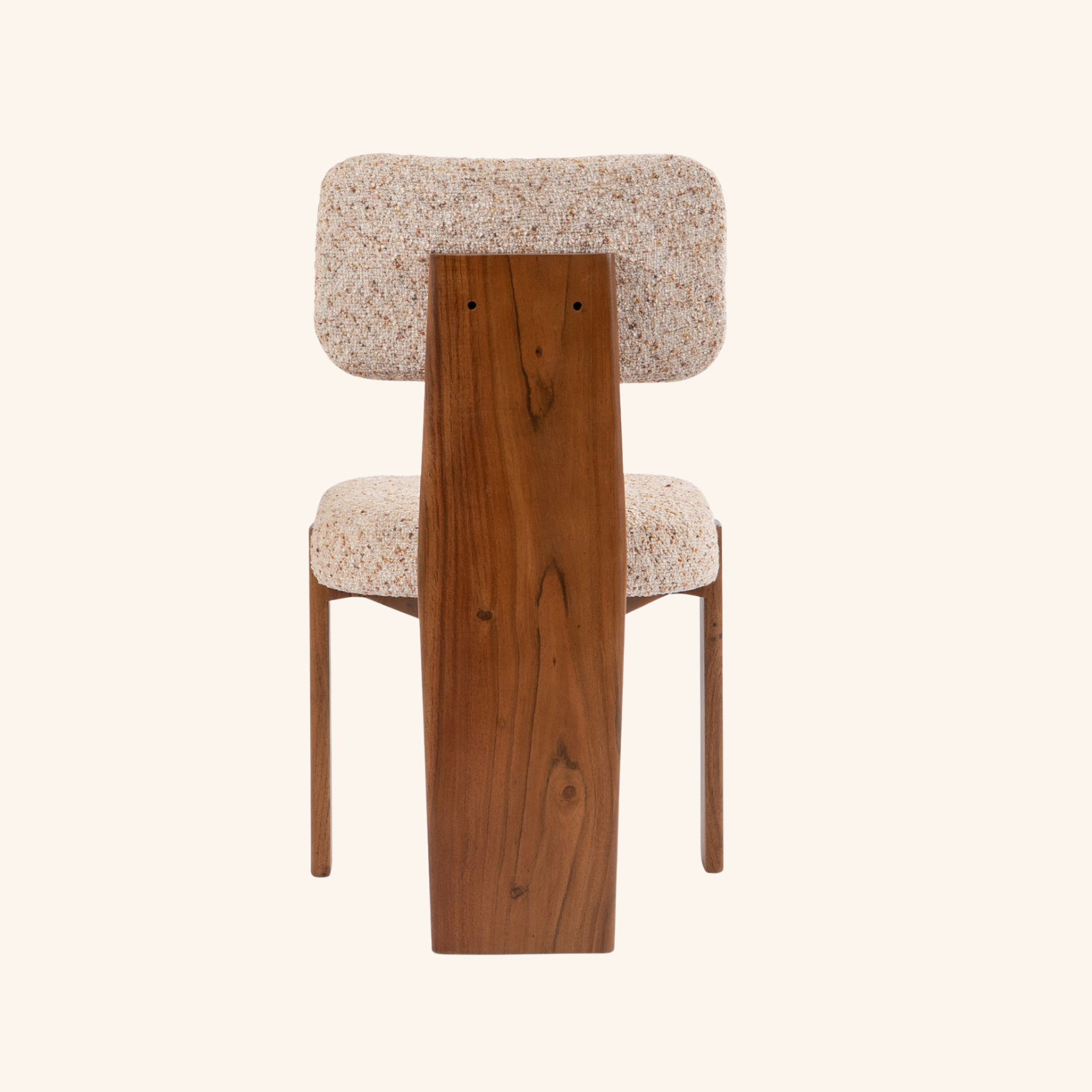 The Arbor Dining Chair reinterprets modernist design through the lens of comfort and craftsmanship. Defined by its architectural wooden spine and generously cushioned seat, it embodies both structure and softness. The textured upholstery complements the natural warmth of solid wood, resulting in a chair that is as sculptural as it is inviting. Perfectly suited for refined dining spaces or statement interiors, the Arbor balances geometry with grace in every detail.