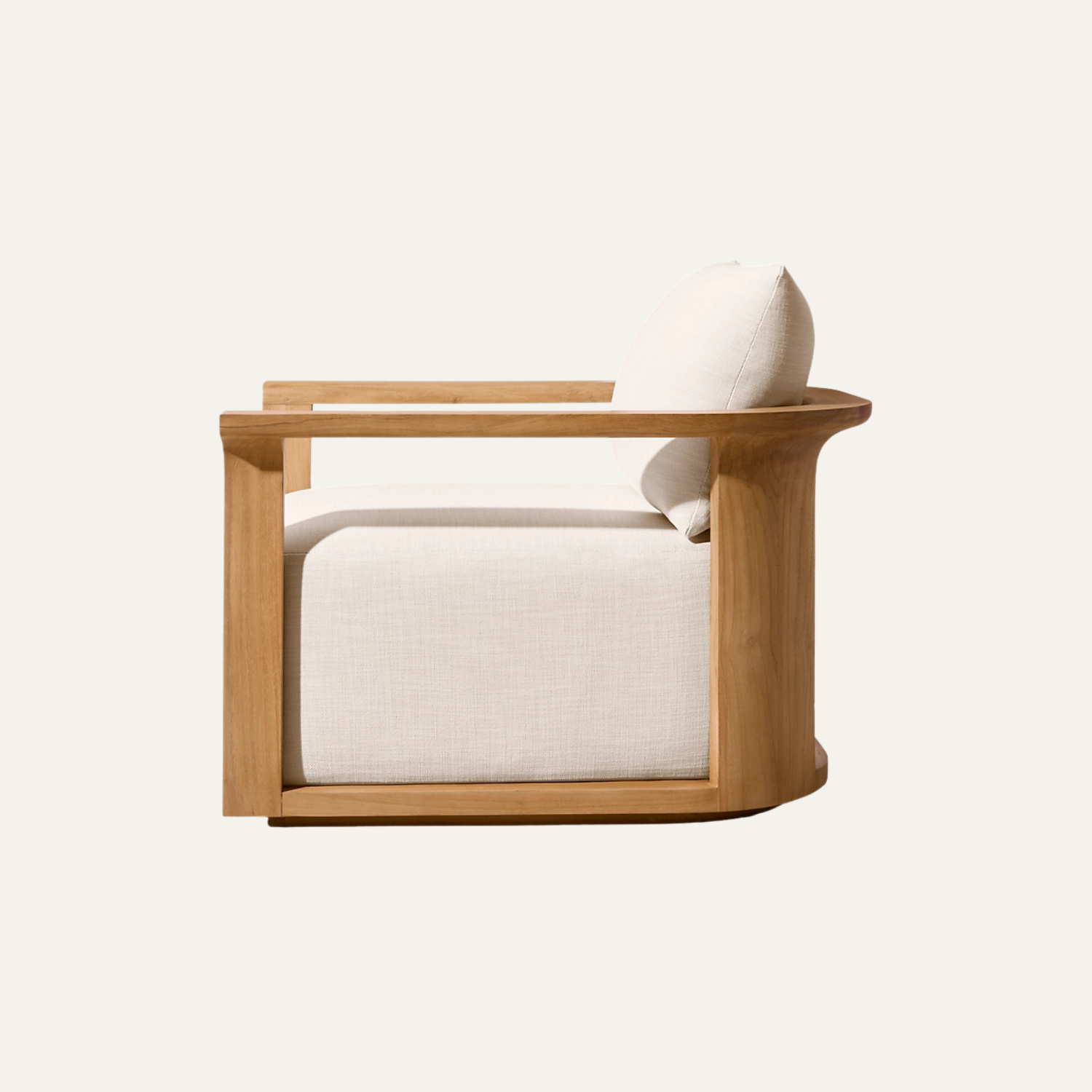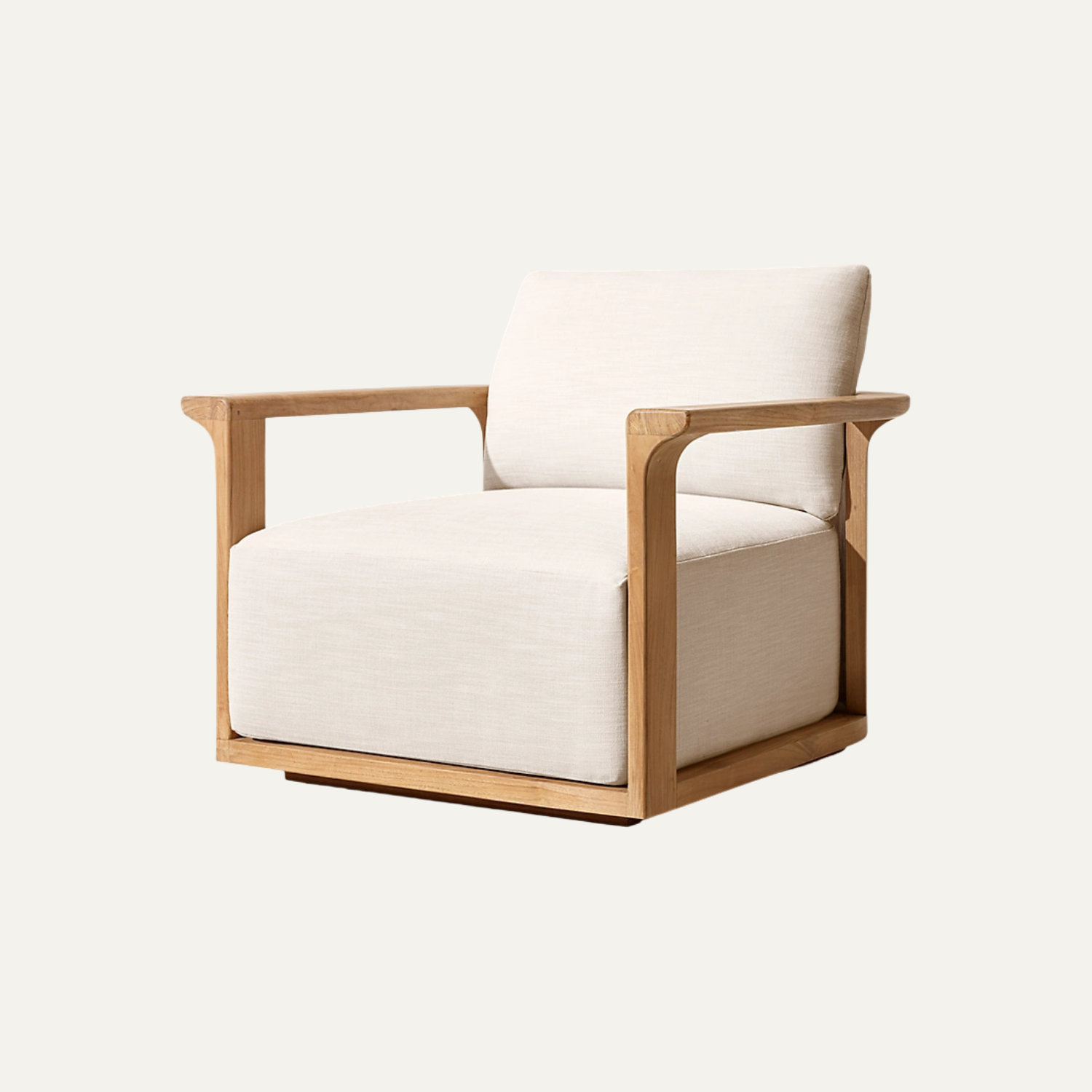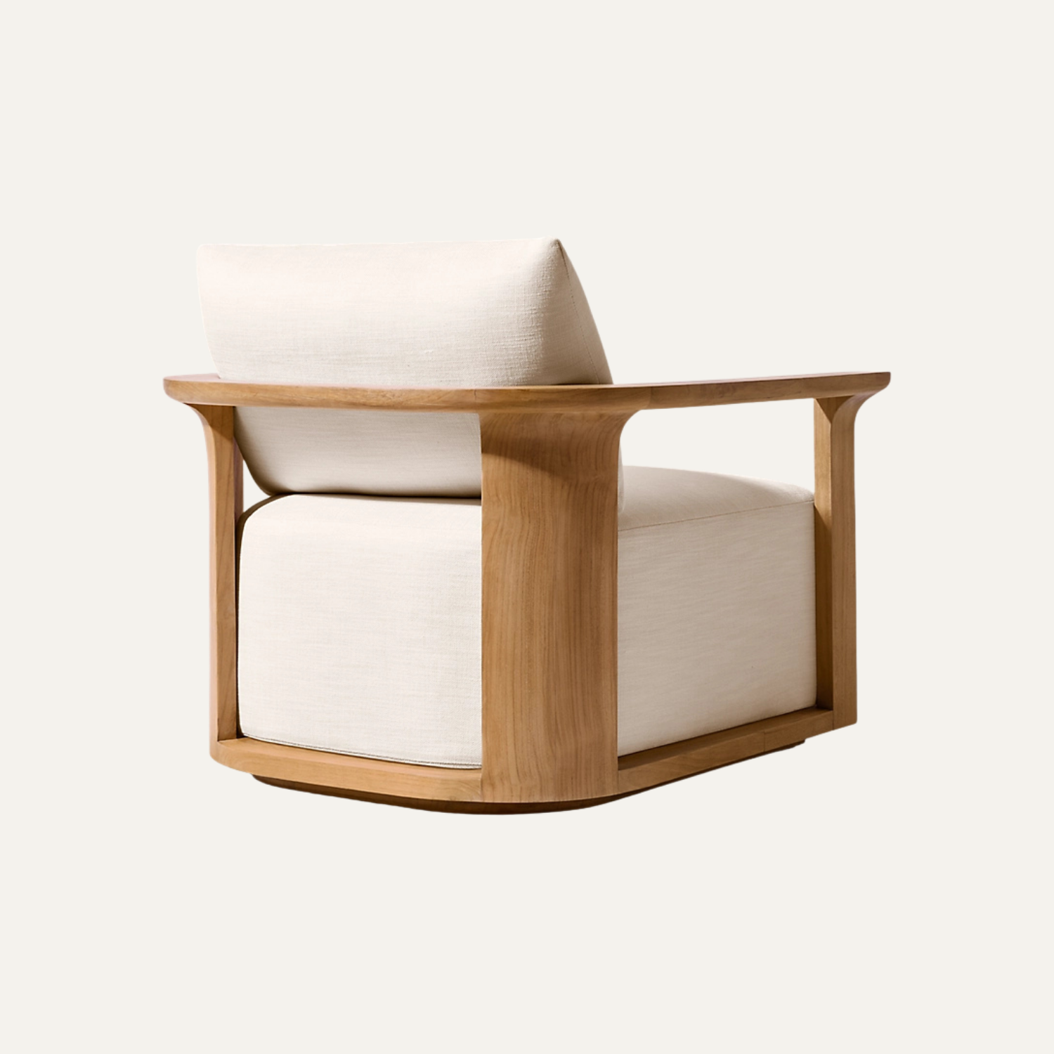 Arden Lounge Chair blends refined minimalism with sculpted wooden craftsmanship, offering a generously cushioned seat and clean architectural lines that bring quiet luxury and modern comfort into any living space.
