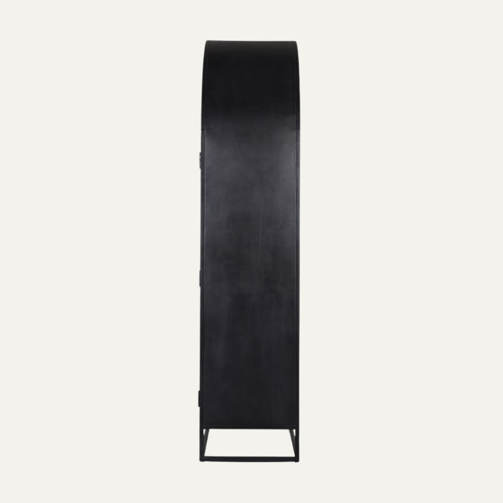 The Aurelius Arch Cabinet embodies refined elegance through its bold arched form and rich dark wood finish. Framed with a subtle black metal structure, this cabinet balances classic architectural influence with contemporary sophistication. The upper glass-fronted doors reveal structured shelving for display, while the lower solid panels provide concealed storage, making it a perfect statement piece for curated interiors, from living rooms to private libraries.