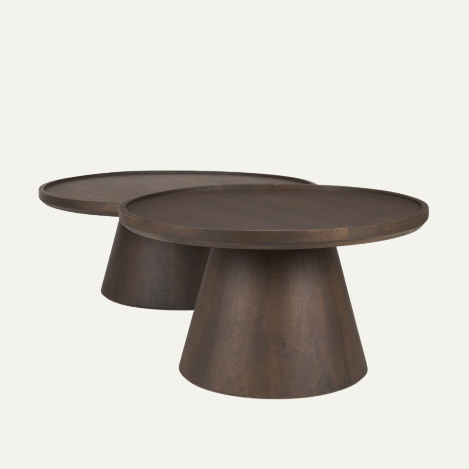 The Dualis Elevate Coffee Table is a refined composition of layered surfaces and sculptural balance. Featuring two circular tabletops at different heights, this design creates visual depth while maintaining a calm, grounded presence. Supported by solid conical bases, the table blends architectural strength with soft, rounded contours—perfect for sophisticated living spaces that value modern luxury and functional elegance.