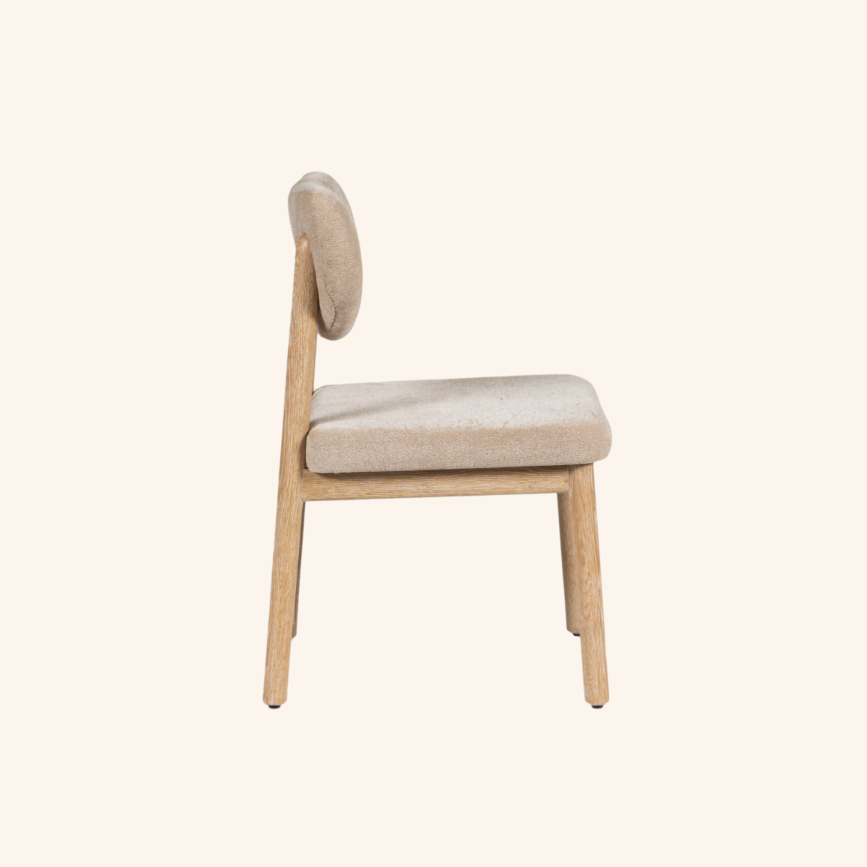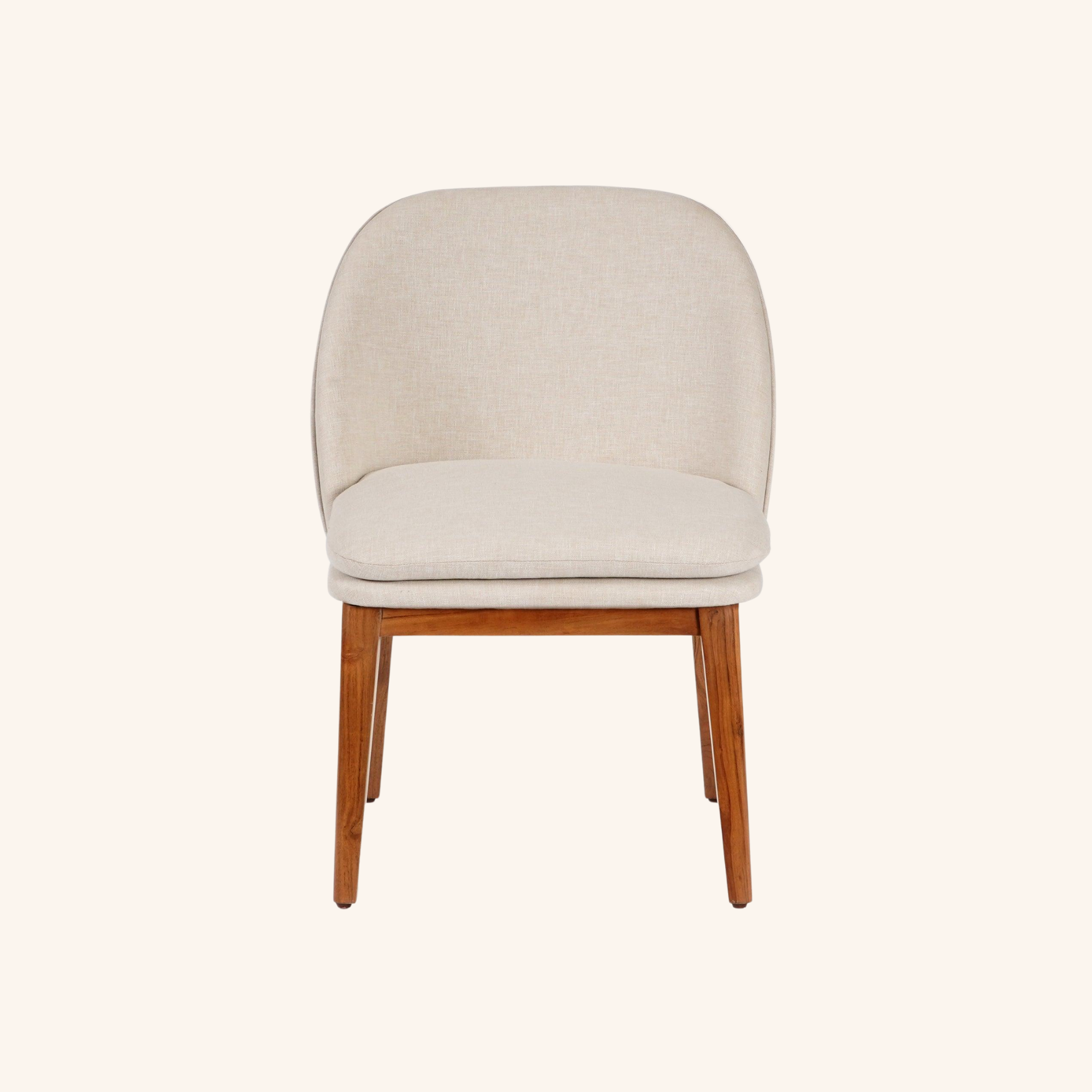 The Haven Dining Chair embodies serene modernity through its seamless blend of form and comfort. Featuring a gently curved upholstered back and a plush seat cushion, it offers a welcoming softness supported by a sturdy solid teak base. The minimalist profile and warm natural wood tone make it a versatile addition to contemporary interiors, exuding effortless elegance while providing superior comfort during dining or leisurely moments.