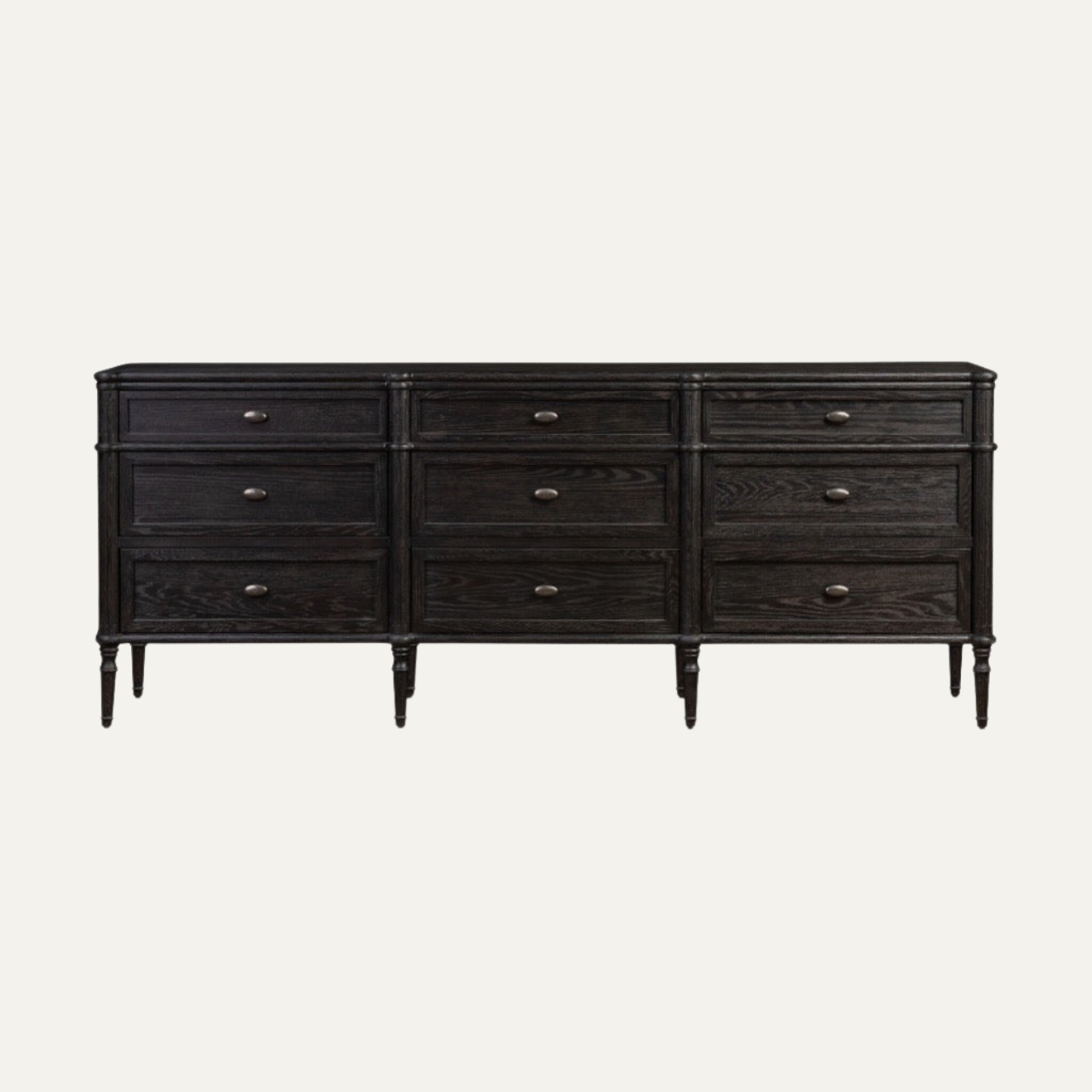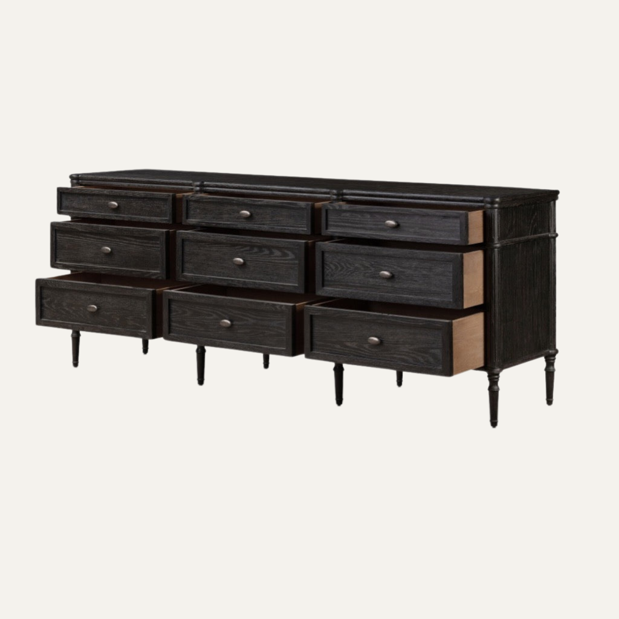 The Heritage Nine-Drawer Dresser is a timeless storage piece that blends classic proportions with refined craftsmanship. Featuring a balanced nine-drawer configuration, subtle molding details, and elegantly turned legs, this dresser showcases the beauty of natural wood with a deep, sophisticated finish. Designed to offer generous storage while maintaining an understated presence, it brings warmth, order, and enduring elegance to bedrooms and curated living interiors.