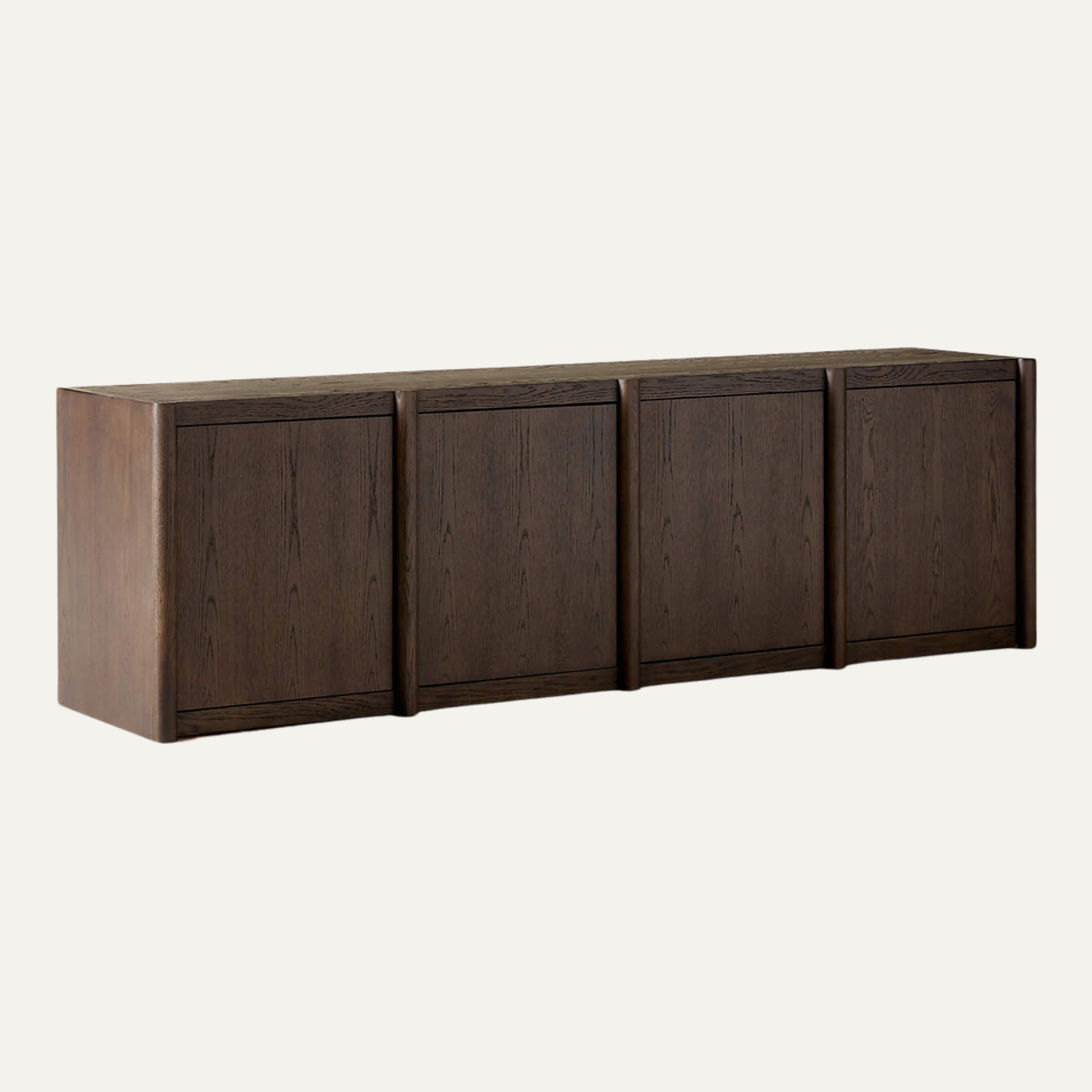 Lynwood Dark Sideboard pairs refined, modern proportions with warm, hand-finished solid wood to create a statement storage piece that feels both timeless and contemporary — ideal for anchoring living or dining areas while keeping clutter neatly concealed.