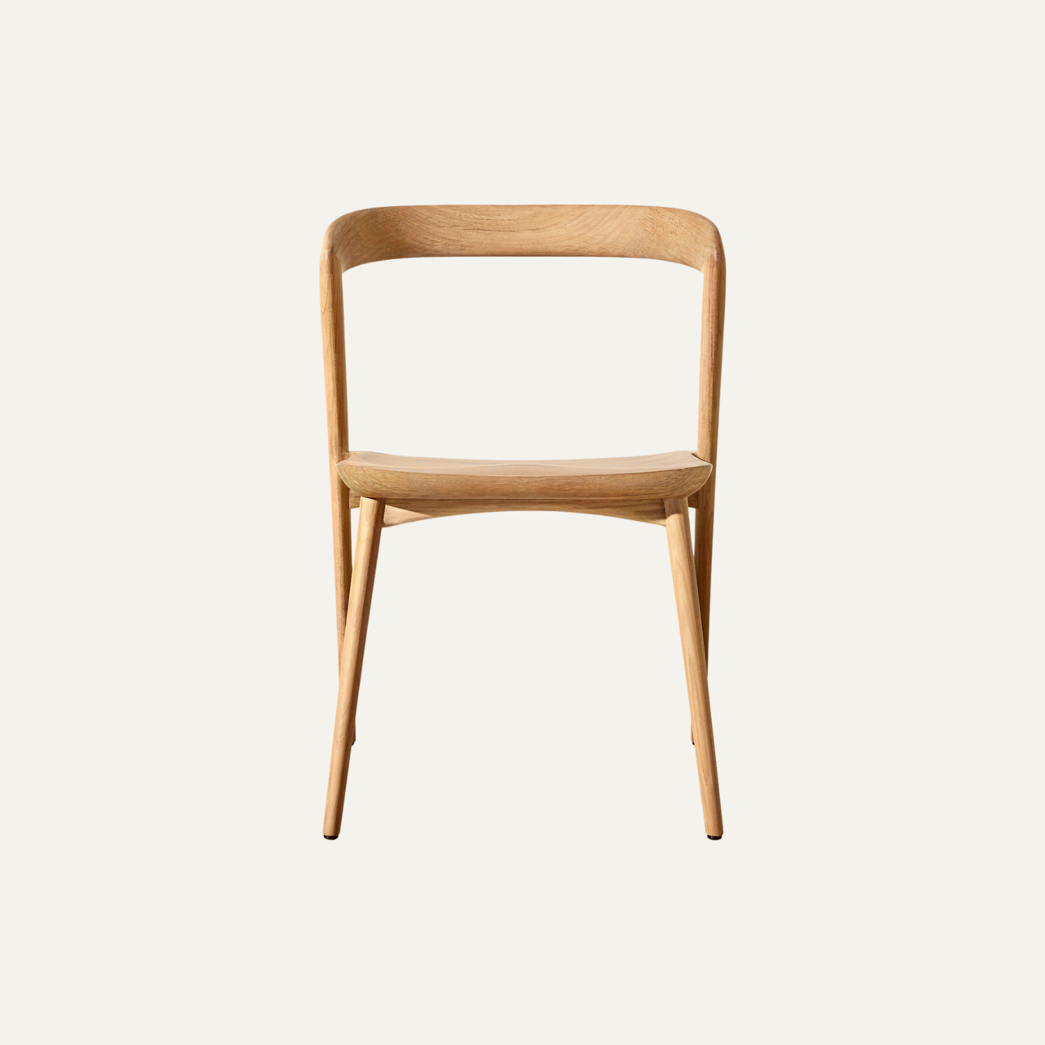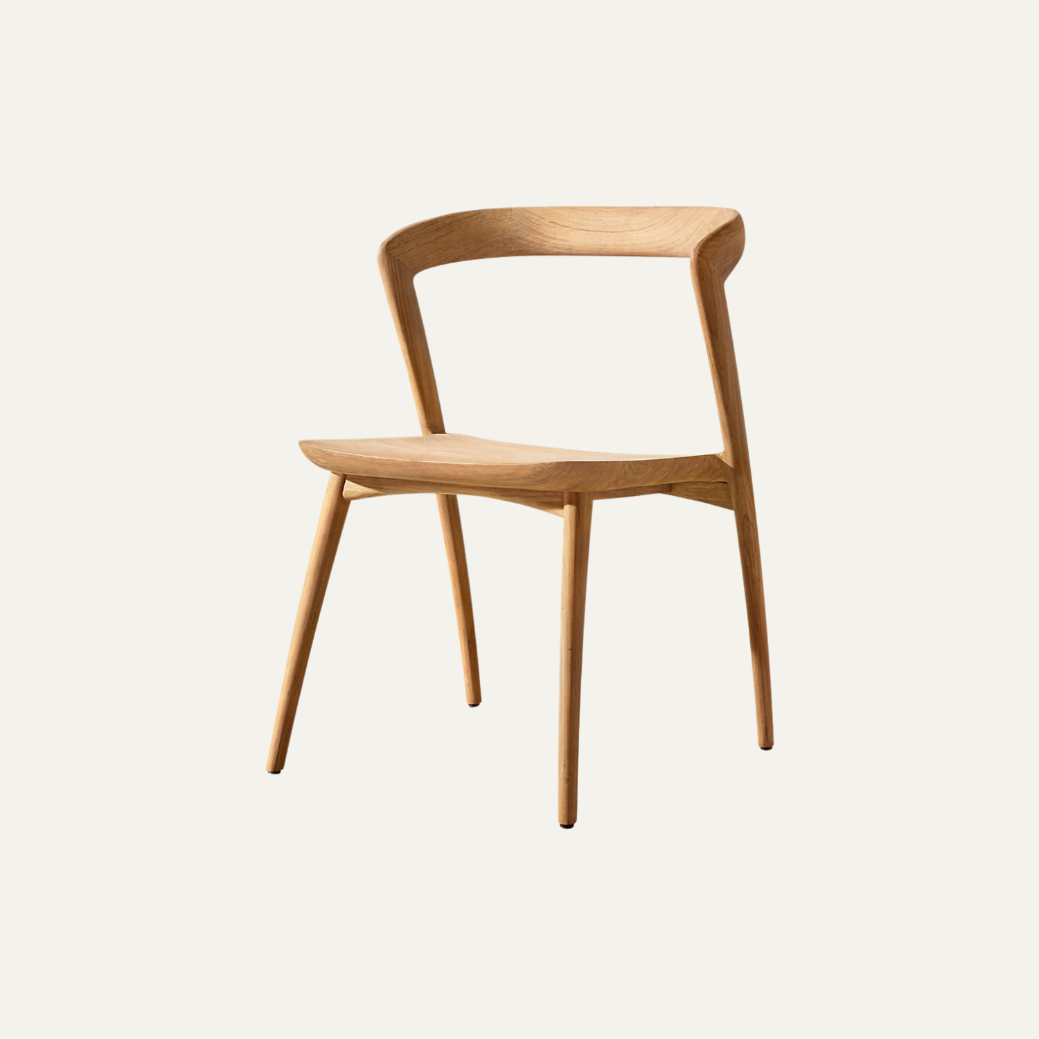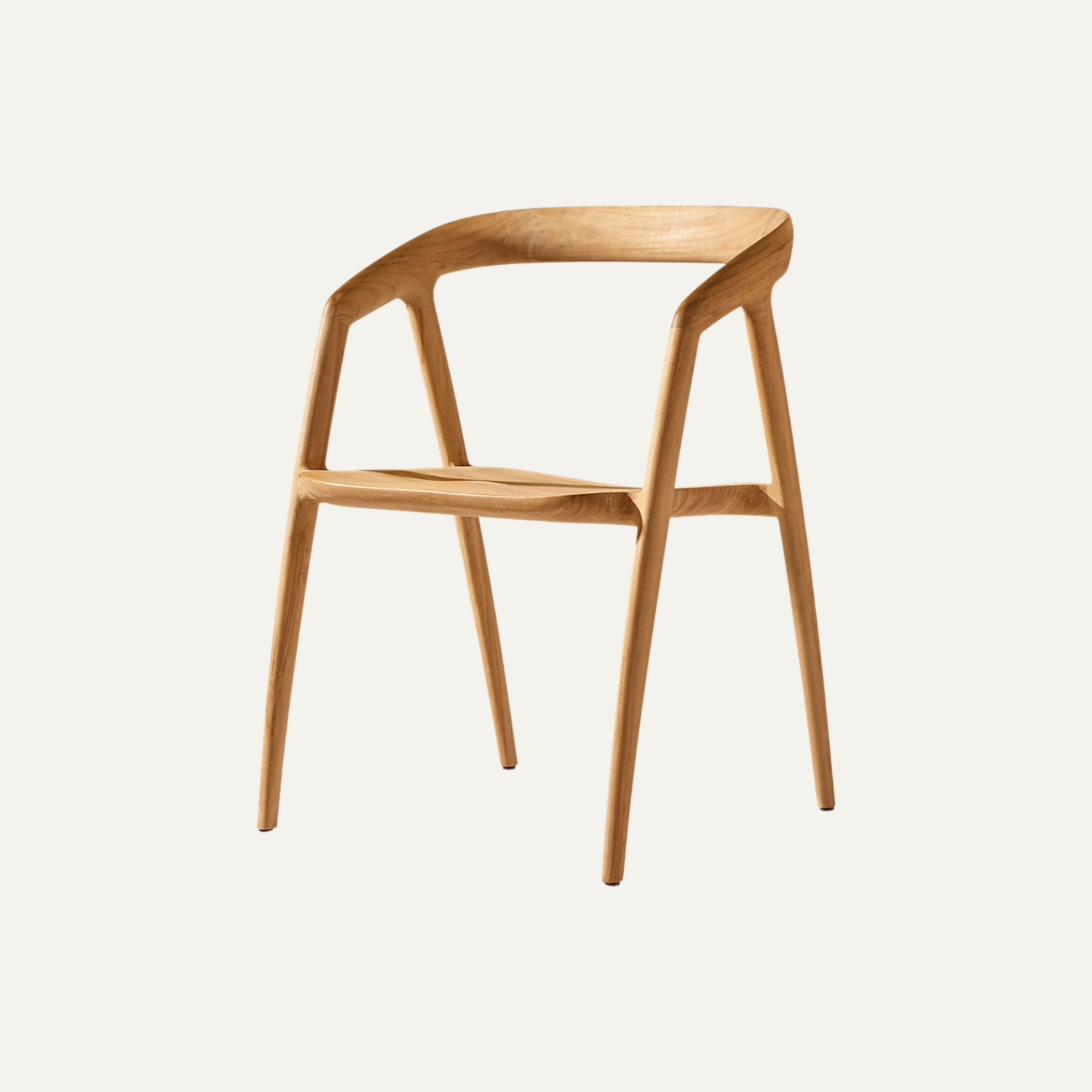 The Outdoor Sculpted Teak Chair features a refined minimalist silhouette crafted from premium solid teak, delivering exceptional durability and a natural organic form perfect for modern patios, terraces, and outdoor dining settings.