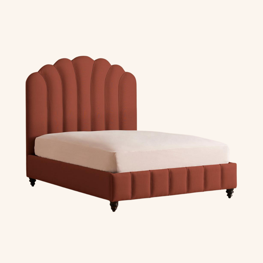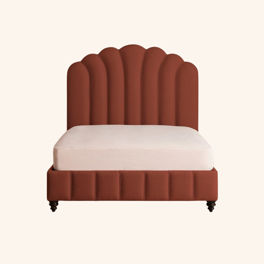 The Aurelia Upholstered Bed blends sculptural elegance with luxurious comfort. Its signature scallop-arched headboard creates a soft architectural rhythm, wrapped in premium upholstery that adds warmth and sophistication. Supported by a fully padded frame and carved wooden legs, Aurelia offers an elevated resting experience while serving as a striking statement piece in any refined bedroom interior.